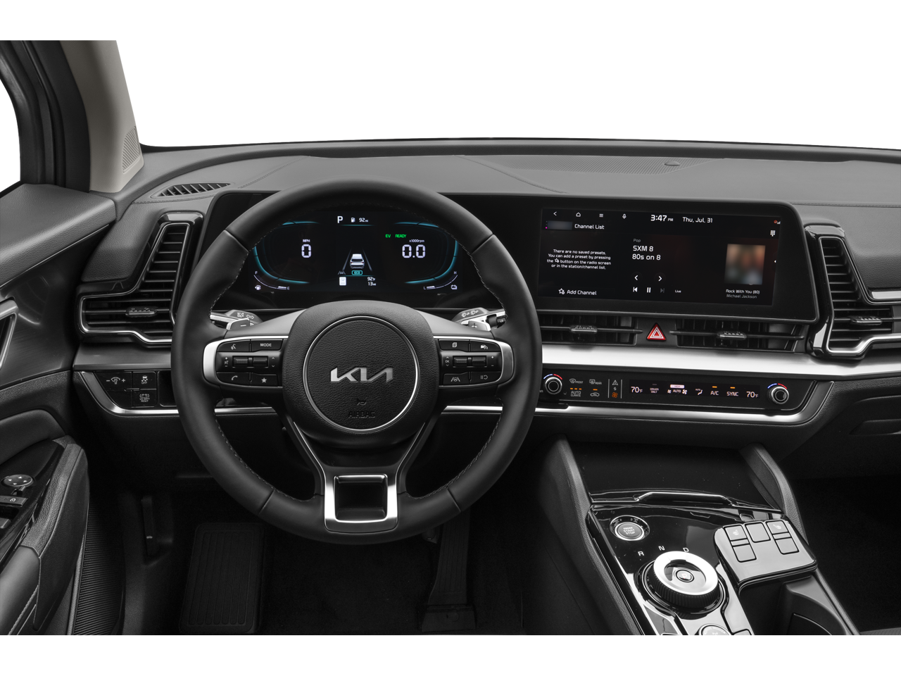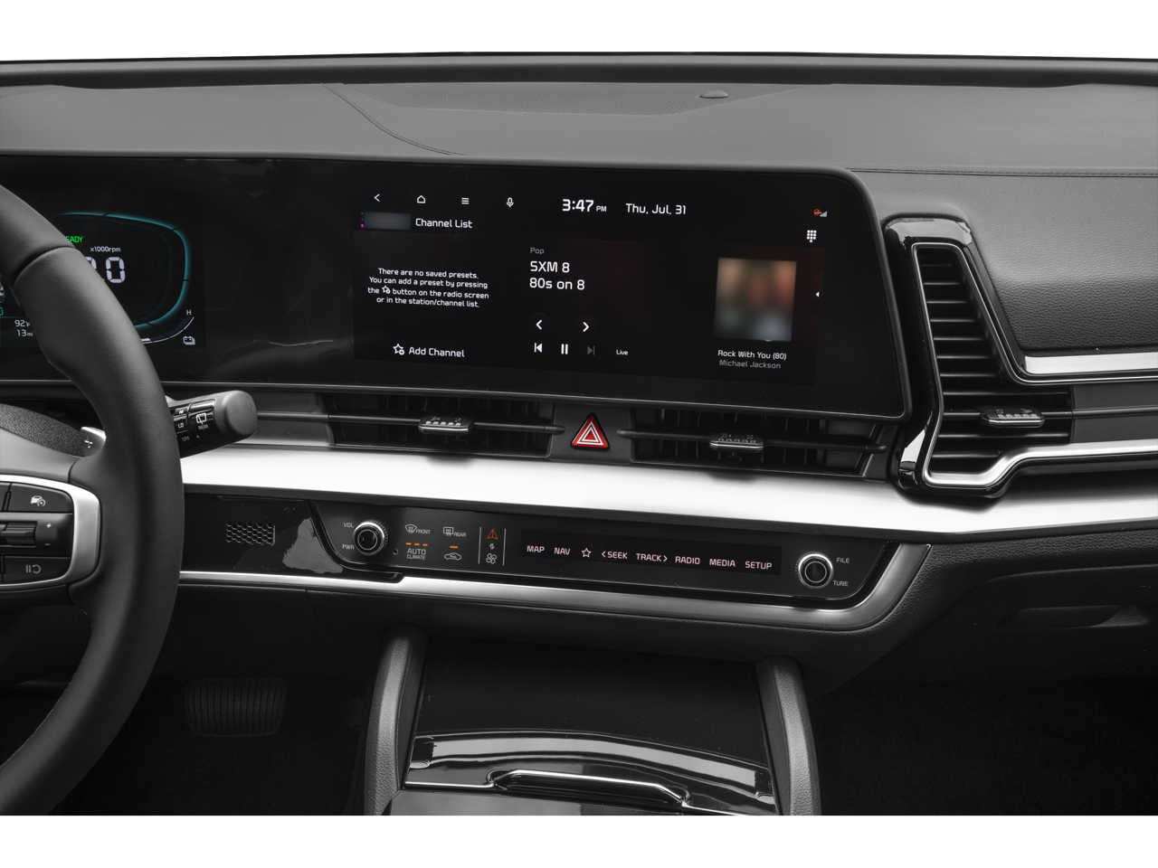 - Radio: AM/FM/HD Audio System -inc: 12.3" touchscreen, navigation, 6 speakers, wireless Apple Carplay and Android Auto, Kia Connect, voice recognition, OTA map updates, USB, satellite radio and Bluetooth® phone w/streaming audio