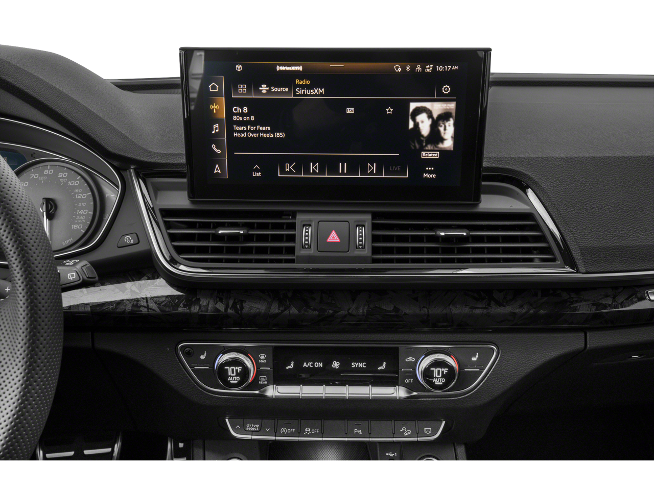 - Radio: AM/FM Stereo -inc: Audi sound system, MMI touch display w/10.1" center screen, preparation for mobile phone (Bluetooth®) and Audi smartphone interface w/wireless Apple CarPlay