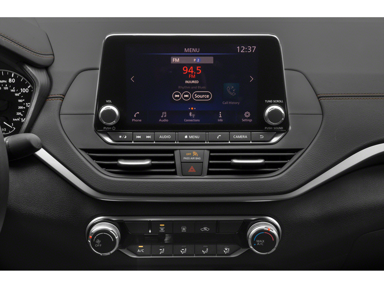 Step inside the Altima 2.5 SR and experience the refined cabin, featuring a wealth of premium amenities that elevate your driving experience. Sink into the supportive sport bucket seats, enjoy the convenience of the NissanConnect system with Apple CarPlay and Android Auto, and stay connected with the intuitive steering wheel-mounted audio controls.