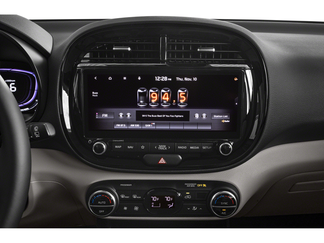 - Radio: AM/FM/MP3/HD Audio System -inc: UVO link, navigation, SiriusXM, 10.25" color touch screen, 6 speakers, Android Auto/Apple CarPlay, USB input, audio remote control, Bluetooth® wireless technology w/voice recognition and wireless charging